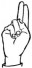На ћирилици написано МИЛИЈАС ВИРИЈЕВИЋ састоји се из 16 слова [?]. Исписано ћириличном једноручном азбуком за глувонеме:
